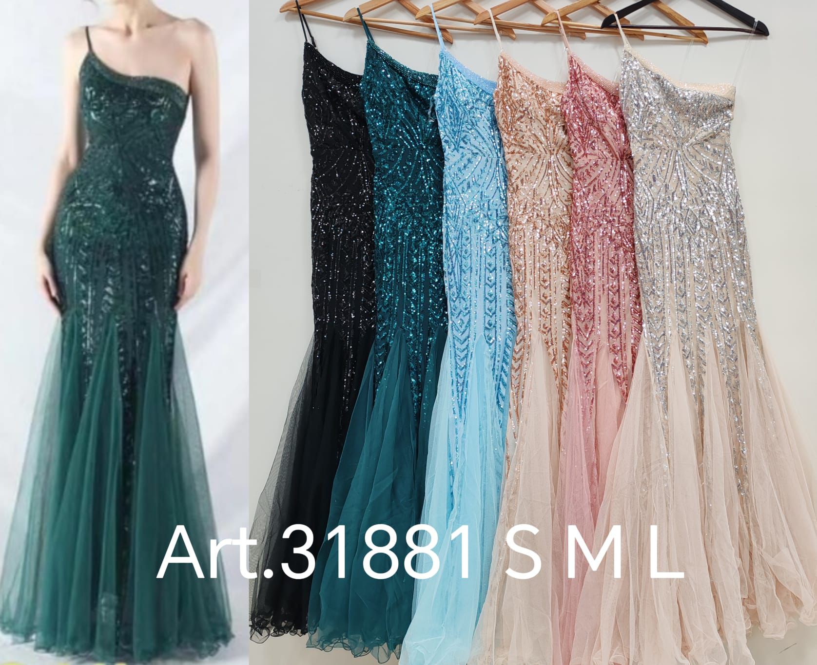 Abito lungo da cerimonia taglio a sirena monospalla con pailliettes