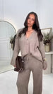 completo coordinato in maglia a costine (rib-knit set), perfetto per un look comodo ma chic, ideale per la casa o per un abbigliamento casual da giorno.