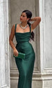 • Silhouette a colonna: L'abito segue le linee del corpo in modo sinuoso, scivolando dritto fino a terra (lunghezza maxi).