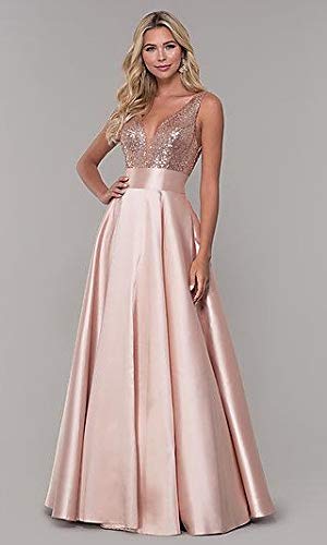 Abito elegante da cerimonia, con corpetto in pailliettes e gonna in raso.