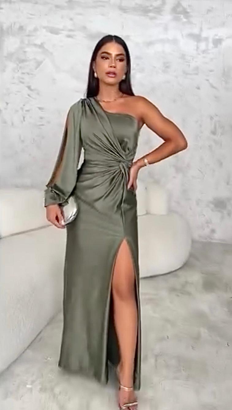 Abito monomanica con apertura e intreccio, con spacco laterale