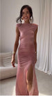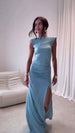 • Modello: Si tratta di un abito lungo da sera (longuette/floor-length) dal taglio aderente (bodycon) che valorizza la figura.