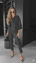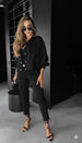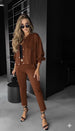 Il coordinato e’ un mix di eleganza casual e street style chic, perfetto per un'uscita diurna o serale.